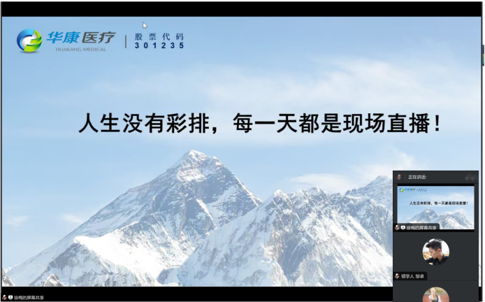 在分享会中,华康医疗的代表们通过丰富的案例和实践经验,重点介绍了公司发展历程、公司主营业务及资质、企业文化和经营理念、火神山的故事、员工永续发展计划五个方面的内容,强调了企业文化与企业发展之间的密切关系。