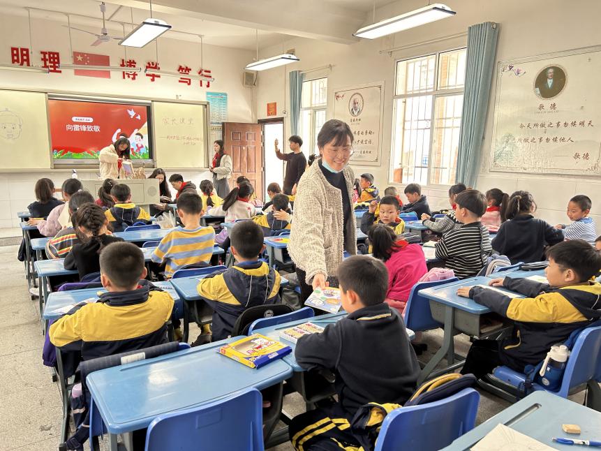 三月是学习雷锋月,为使雷锋精神永不褪色,永葆活力,大力弘扬雷锋精神,同时增强青年党员弘扬正能量的使命、责任、担当精神,yl6776永利集团研究生党支部组织开展支部垄上行系列活动之“学习雷锋进校园”,旨在同学中掀起学习雷锋精神、大力弘扬雷锋精神、积极践行雷锋精神的热潮,3月20日下午在yl6776永利集团研究生支部书记张江莉老师的带领下,第一小组成员李亚雯、沈舒淇、努尔扎提、代安琪一同前往荆州市实验小学进行学习雷锋志愿宣讲活动。 活动开始,由主讲人李亚雯以动画片导入的形式带领同学们了解雷锋精神,讲述雷锋同志先进事迹,总结新时期雷锋精神的表现,后与同学们讨论如何在日常生活中践行雷锋精神,如何从身边的小事真正践行雷锋精神,如何深刻理解践行社会主义核心价值观,在小组成员们的默契配合下给小学生们带来了一堂生动的思想政治实践教学。在活动的最后,宣讲团们组织同学们一同绘制了雷锋肖像画,使雷锋与雷锋精神真正地入脑入心,也使整个活动生动活泼,圆满结束。 此次宣讲活动是由yl6776永利集团研究生支部组织发起,面向小学生们进行的一次关于品读雷锋事迹,弘扬雷锋精神,学习雷锋实践的一次宣讲,是青年党员将理论研究与实习实践相结合的一次重要实践尝试,凝练团队的智慧和力量,用担当奉献诠释新时代雷锋精神,以实际行动书写新时代的雷锋故事。