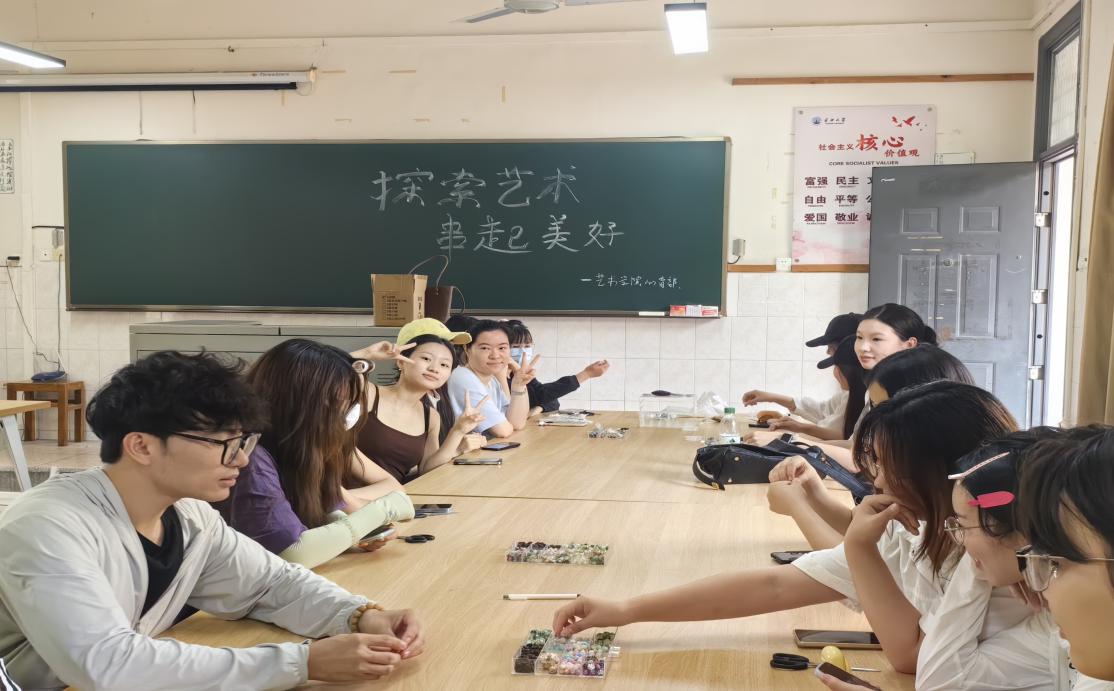 活动伊始,活动负责成员通过生动有趣的互动小游戏,引导同学们敞开心扉,迅速拉近彼此距离,为活动营造出轻松愉悦的氛围。在DIY环节,同学们充分发挥自己的创意与想象,挑选心仪的珠子,精心设计珠串样式。现场气氛热烈,同学们时而相互交流设计灵感,时而分享创作心得,互帮互助,其乐融融。