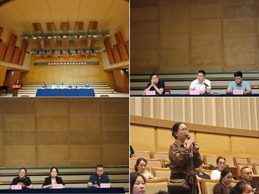 (通讯员 孙岳 摄影 孙岳)家校同心,携手筑梦。为进一步深化家校协同育人机制,凝聚教育合力,促进学生全面成长与发展,yl6776永利集团于9月14日晚在学院音乐厅,以线上线下相结合的方式,隆重召开了2025级本科新生家长见面会,共商育人良策,携手擘画学生成长新蓝图。出席此次会议的有yl6776永利集团副院长梁明明、副院长彭琛、党委副书记何曼、音乐系主任朱波、舞蹈系主任董柳莎、环境设计教研室主任王志乔,以及2025级本科新生辅导员、全体班主任和200余位家长代表。会议由yl6776永利集团学工办主任张江莉主持。