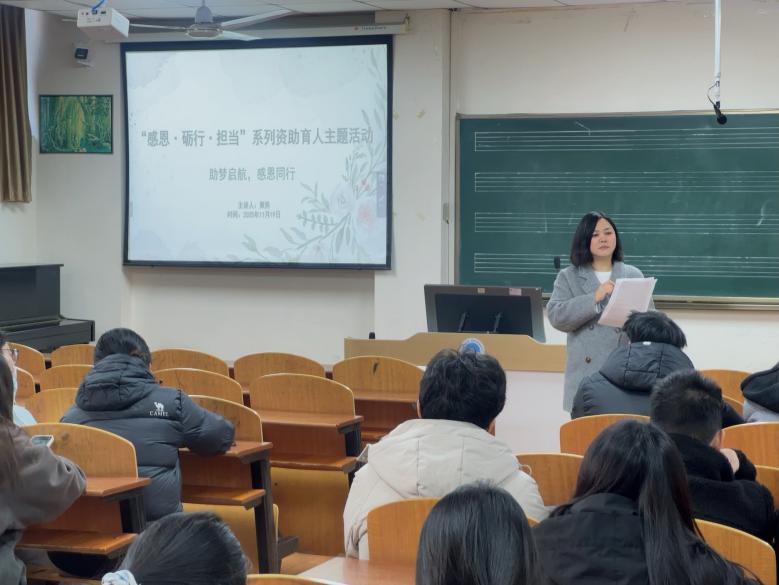 为进一步加强对受助学生的思想引导,学院近日举办了“助梦启航,感恩同行”主题讲座。讲座中,负责资助工作的辅导员黄燕老师详细解读了国家助学金的政策背景、设立初衷和发展历程,阐述了其作为国家促进教育公平、关心青年成长的重要举措所具有的深远意义。