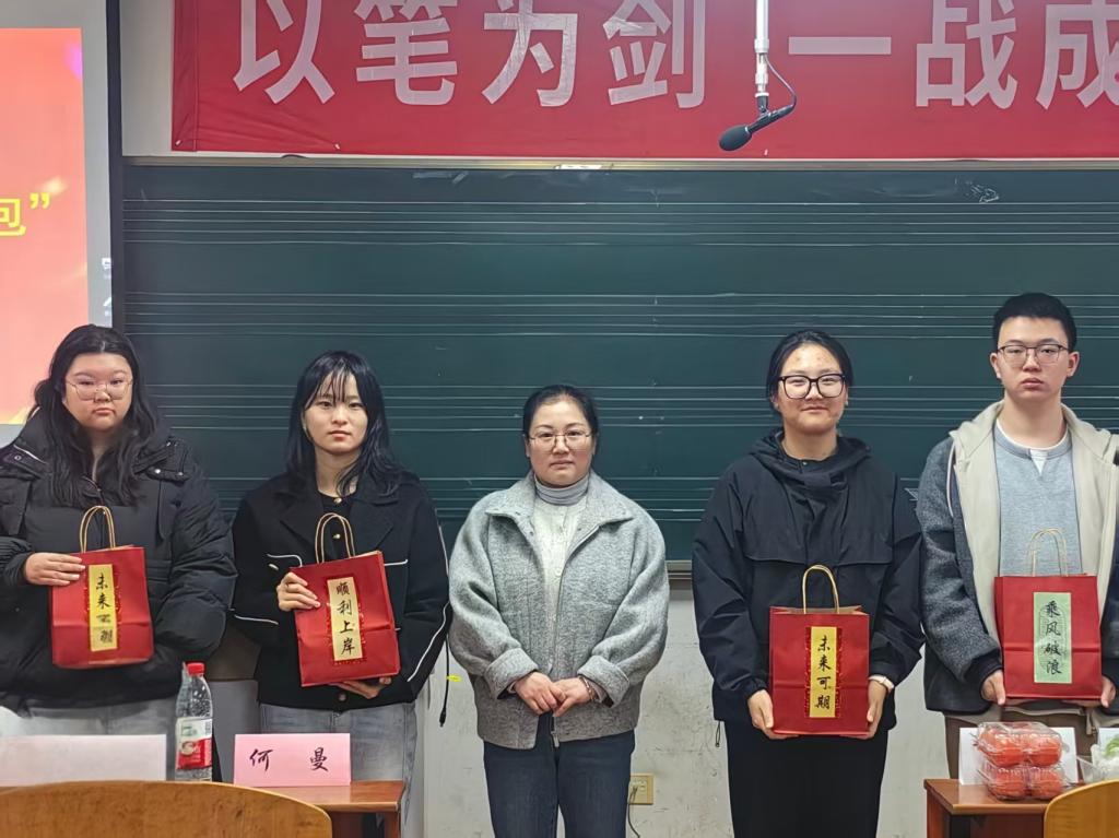 在暖心助研礼包发放环节,曹军、彭琛、何曼三位领导依次为全体考研学子送上祝福,并发放了考研加油包。这份贴心的关怀,让正处于紧张备考中的学子们脸上露出了笑容,有效缓解了他们的焦虑情绪。同学们纷纷表示,学院的支持是他们最温暖的“强心剂”。他们将带着这份关爱,心无旁骛地全力冲刺,用优异的成绩回报学院的培养与期望。