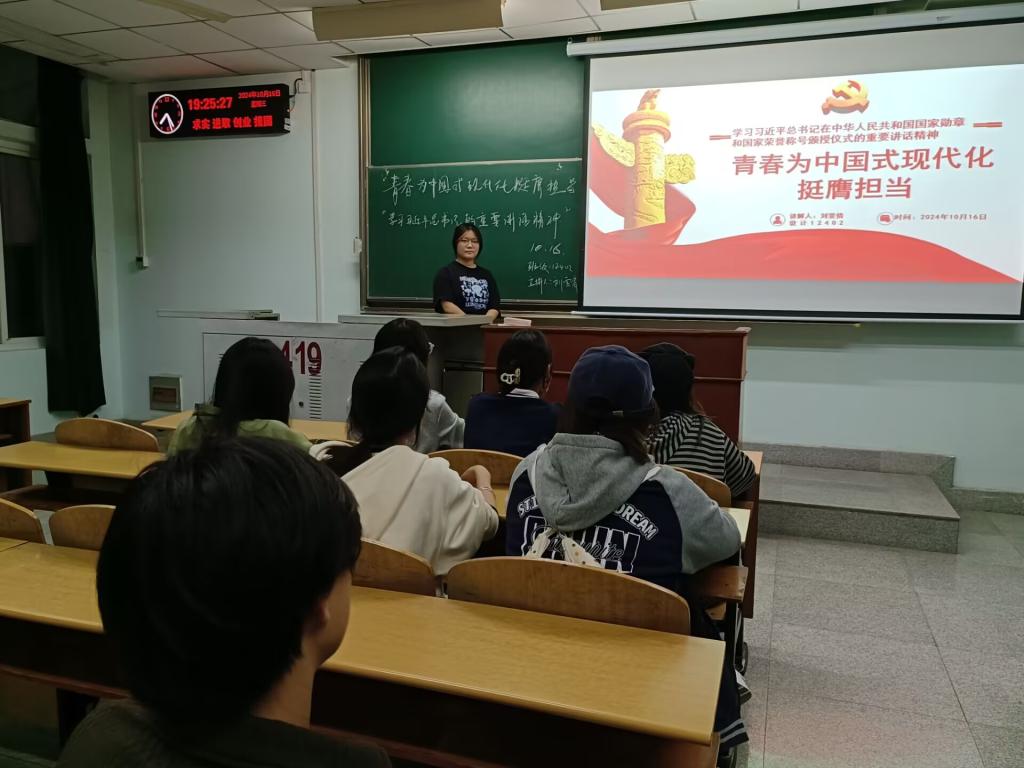 习近平总书记在庆祝中华人民共和国成立75周年招待会上指出“我们的现代化既是最难的,也是最伟大的。”75年的艰苦奋斗,中国式现代化已经展开壮美画卷并呈现出无比光明灿烂的前景。我院通过开展相关团会,引导同学们坚持以习近平同志为核心的党中央坚强领导,坚持以习近平新时代中国特色社会主义思想为科学指引,勠力同心、团结奋斗,积极投身社会实践,在新时代新征程上创造出新的更大辉煌,同时要拿出永不懈怠的精神状态,保持一往无前的奋斗姿态,居安思危、未雨绸缪,准确识变、科学应变、主动求变,积极面对一切不确定难预料的风险挑战,牢牢掌握发展的主动权,依靠顽强奋斗打开事业发展新天地。