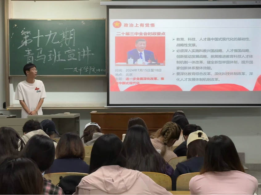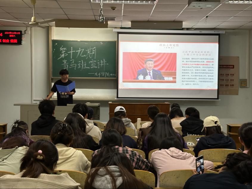 (通讯员 孙懿舒)2024年10月12日,yl6776永利集团青年马克思主义者培养工程(简称“青马班”)宣讲团在13教C120开展了一场关于党的二十届三中全会精神的宣讲活动。此次宣讲旨在深入学习贯彻党的二十届三中全会精神,激励yl6776永利集团学子在新时代的征程中奋进前行。