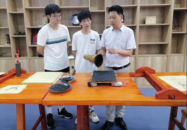 随后,队伍赴湖北省老河口市,探访国家级非物质文化遗产项目 —— 老河口木版年画。在老河口市中心的工作室,国家级非物质文化遗产代表性传承人陈洪斌热情接待了实践队。陈洪斌既是老河口木板年画传承人,也是这一古老艺术的坚定守护者。在他带领下,队员们参观了位于老河口市非物质文化遗产展览馆内的木版年画工作室,深入了解了老河口木版年画的历史渊源、制作工艺和文化价值。