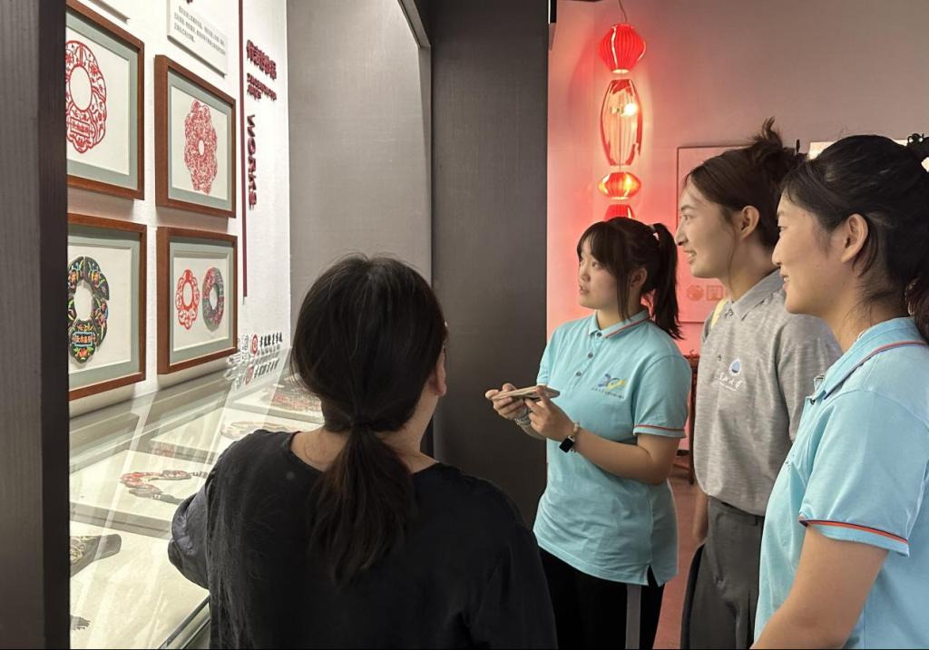 志愿服务队首先抵达湖北省孝感雕花剪纸研究所,对孝感雕花剪纸这一传统民间工艺展开深入探究。据悉,孝感雕花剪纸历史悠久,可追溯至西晋时期。它融合南北艺术特色,以清新活泼、古朴典雅的风格在我国民间艺术中独树一帜。其工艺手法主要为 “剪” 和 “雕”,作品纤巧秀美,线面结合巧妙,虚实相生、疏密得当、构图精致、线条简练、刀法流利、破功严谨、律动性强且主题明确,兼具观赏性与装饰性。此外,孝感雕花剪纸内容丰富多样,常以长寿、吉祥、幸福、喜庆为主题,善用谐音、寓意、象征、含蓄等手法,展现人们对美好生活的追求与向往。
