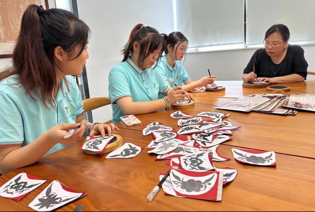 队员们有幸亲身体验了雕花剪纸课程,老师介绍了雕花剪纸的历史渊源、艺术特色及基本技法,强调其不仅是纸张上的艺术,更是中华民族传统文化的缩影,承载着人们对美好生活的向往和追求。在轻松愉悦的氛围中,老师亲自示范,队员们手持刻刀在红纸上创作,随着时间流逝,一幅幅精美的作品呈现,有寓意吉祥的福字、栩栩如生的花鸟鱼虫等。在此过程中,他们不仅学会了基本技法,更深深感受到非遗文化的独特魅力与价值,对非遗文化有了更深刻的认识和热爱。