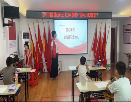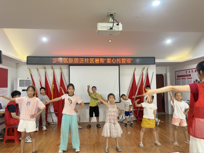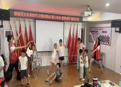 (通讯员 杨欣宇 刘莉红 吴雨聪 刘欣晨 林晓阳)“抬头、展臂、踢腿!”8 月 1 日早上9:00,在张居正社区三楼,来自6776永利集团长青艺梦志愿服务队的4名大学生志愿者带着15余名小学生跳起活力四射的《向未来出发》健身操。这是暑期爱心托管班第四周的“固定开场”,也是大学生志愿者们每天上岗前的“热身仪式”。从晨光到暮色,这群“志愿红”用一周时间,把托管班变成了“运动+文化+爱国”三位一体的成长乐园。