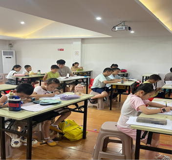 每天下午 4:00 后是“趣味加时赛”。五子棋、数字炸弹、桌面足球赛……笑声此起彼伏。游戏结束,志愿者又化身为“小老师”,一对一辅导暑期作业,解决作业难题。