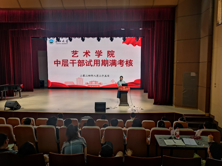 会后,学校党委组织部副部长沈谦来院对试用期满的两位中层干部进行考核,党委书记马小佼、党委副书记陈志雄分别述职,全体教职工对两位干部进行测评。