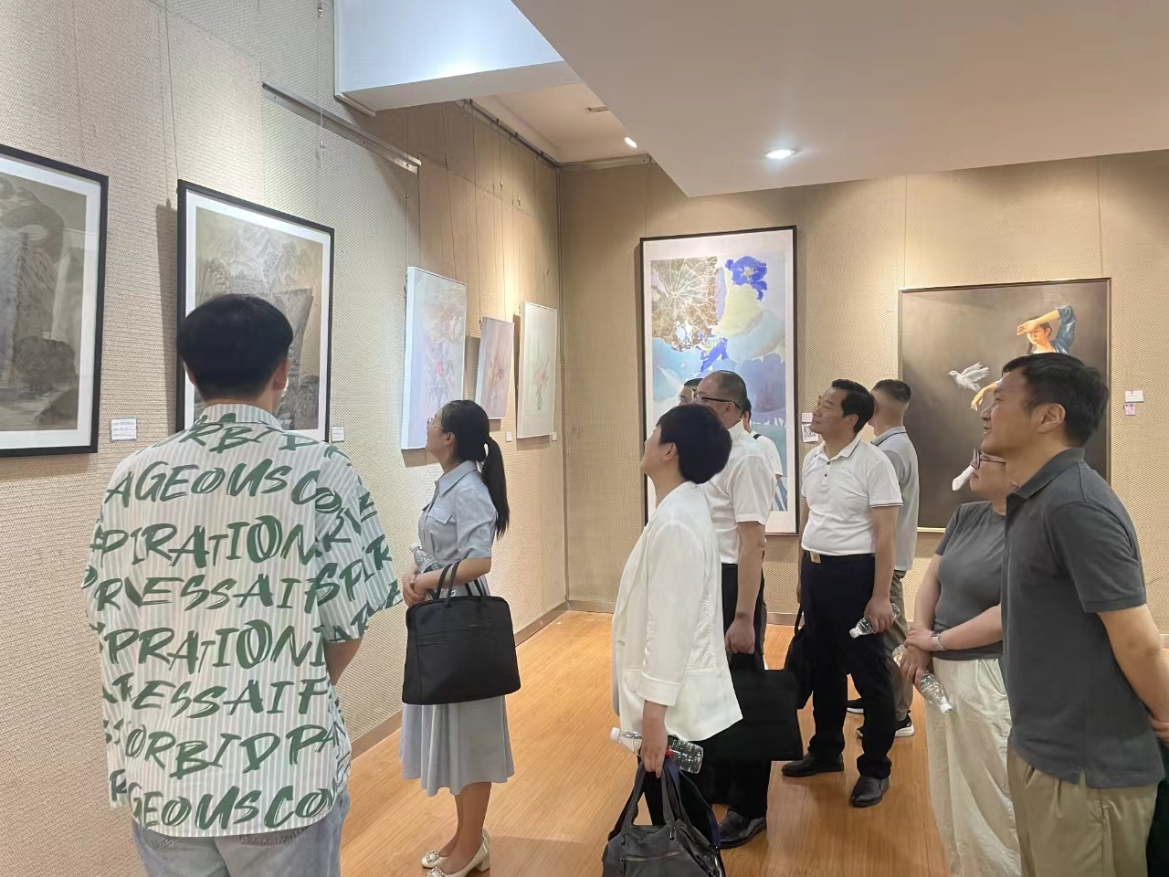 杜国锋带领石首市来宾参观“校史掠影长廊”和“辉煌20年主题展览馆”。马小佼、曹军陪同石首市来访领导到美术展厅参观了美术专业毕业作品展,到音乐厅及舞蹈教室观摩了声乐、钢琴排练、舞蹈编导创作展示。
