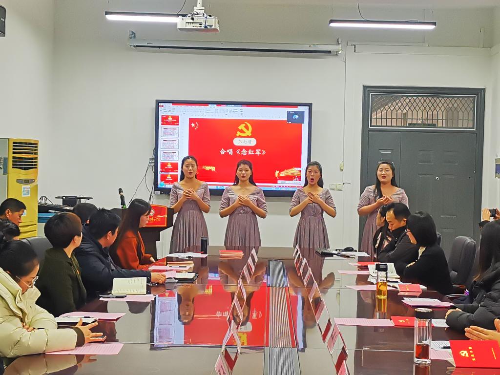 四名音乐系的学生为大家表演了合唱《念红军》,悠扬动听的歌声,让大家沉醉其中,营造出颂党、敬党、爱党的浓厚氛围。