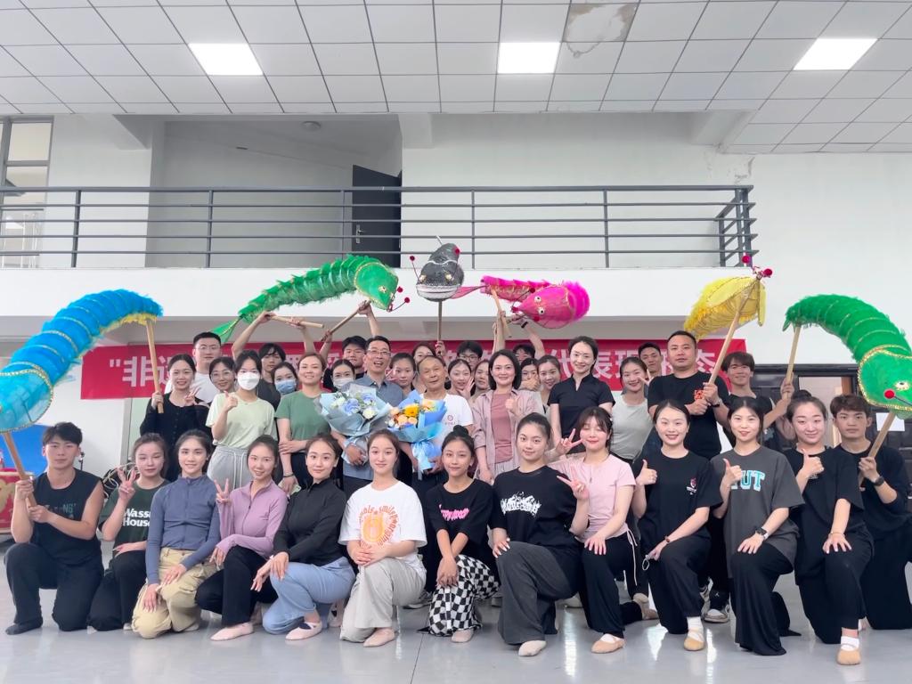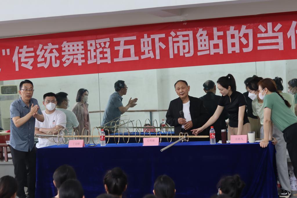 讲座最后,毛明康和丁功顺两位老师表示:非常愿意引领大家感受非物质文化遗产中传统舞蹈“五虾闹鲶”的魅力,同时希望“五虾闹鲇”能够进一步的推广,为“非遗”传统舞蹈的发展做出努力。这次以学术讲座和展示相结合的方式,同时也激发了同学们对于非遗舞蹈文化的热爱,大家纷纷表示受益匪浅,切身感受到了中华传统文化无穷的艺术魅力。