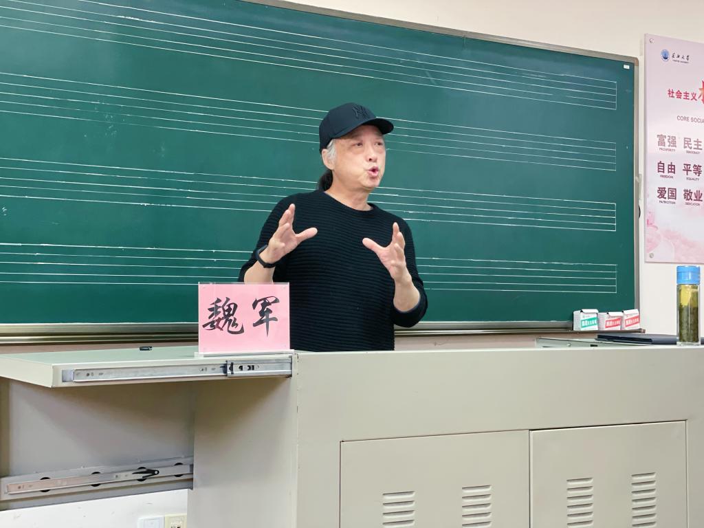 讲座最后,魏军老师与同学们进行了互动交流,鼓励同学们从人物出发,学会观察生活与体验生活,尽情开发想象力,以极大的热情从生活中探寻表演艺术的乐趣,赢得了师生们的阵阵掌声!