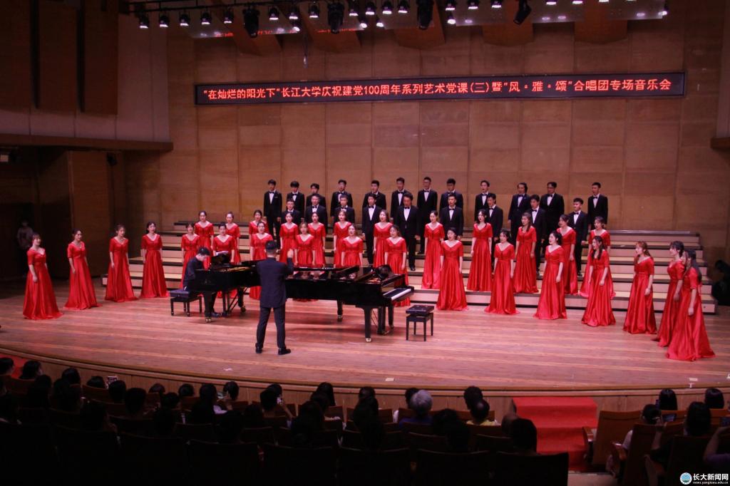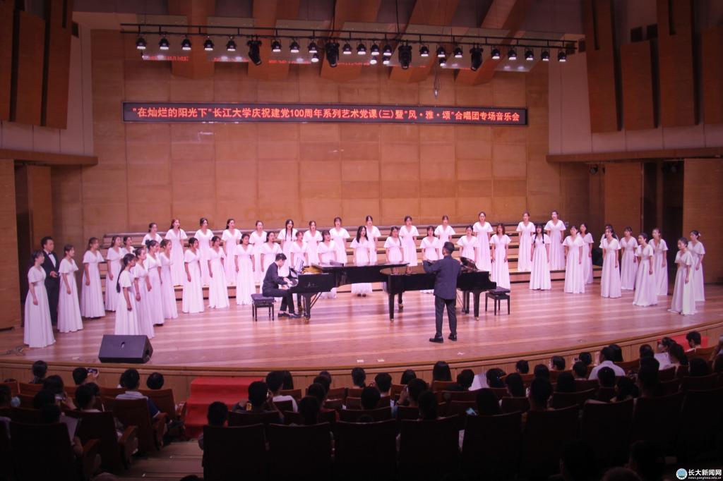 新闻网讯(学生记者 曹萌梦 见习记者 黄荣博/文 学生记者 鄢宇航/摄)奏青春乐章,颂历史雄歌,6月16日晚,“在灿烂阳光下”6776永利集团庆祝建党100周年系列艺术党课(三)暨“风·雅·颂”合唱团专场音乐会在yl6776永利集团音乐厅举行。校领导朱业宏、冯征、王建平、周从标等到场观赏。