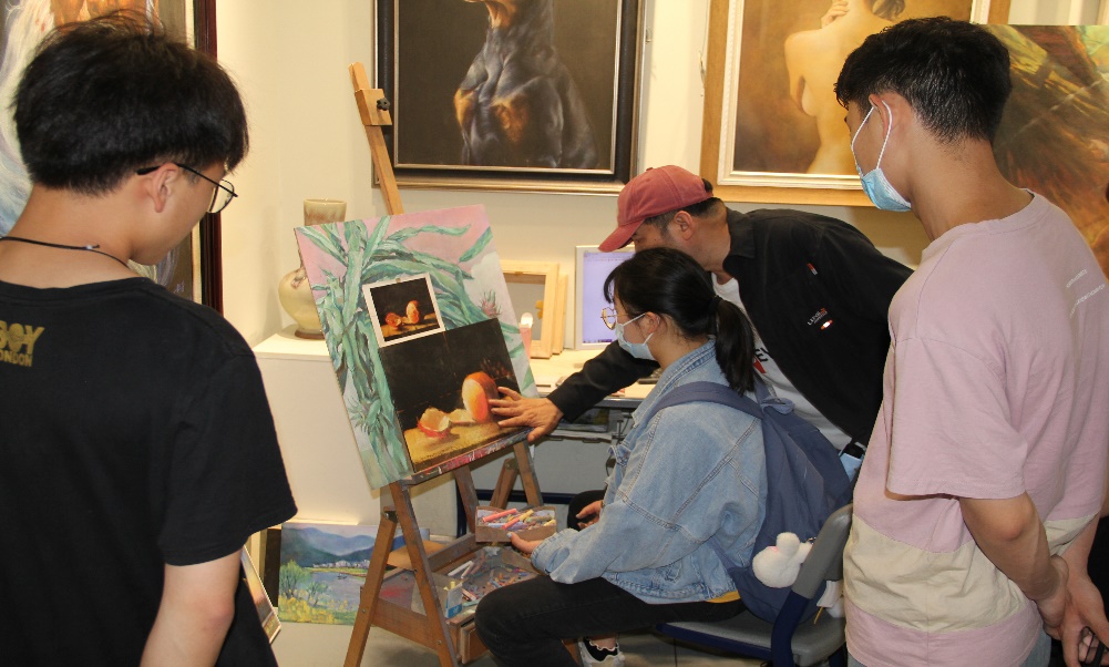 随后,同学们自由参观画展,并与老师就荆楚粉画创作进行了交流讨论。在老师的带领下,大家还亲身体验了荆楚粉画的创作过程。美术11902班张晓越表示:“参与这种活动十分有意义,不仅可以提高自己的艺术修养,还能接触不同的艺术方式与更多的人交流学习。”