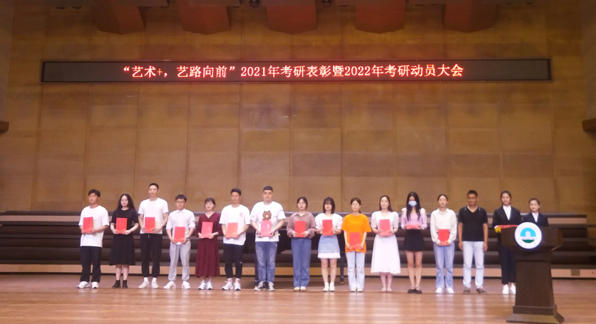 会议在雄壮的国歌声中拉开帷幕。在进行激动人心的颁奖环节之后,考取湖北工业大学的视传11701班涂东同学就为什么要考研以及如何考研等问题与台下同学进行了分享。美术11703班的欧阳慧同学则将自己保研成功的经历概括为正确的方法、不懈的努力、良好的心态加上恰当的复习材料。音表11701班的徐子涵同学重点讲述了自己考研调剂并成功被新疆石河子大学录取的经历,而考取本校研究生的音乐11701班黄慧同学则专门就英语学习给大家做了分享。