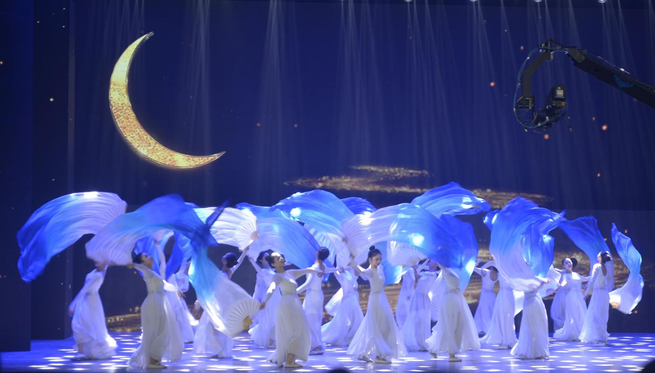中篇女子群舞《荆江之恋》由佘思琦老师创编,舞蹈凭借一把水蓝长扇,生动唯美地展现了演员曼妙的舞姿和江水的灵性,表达了荆州人民对荆江的深爱和眷恋之情。