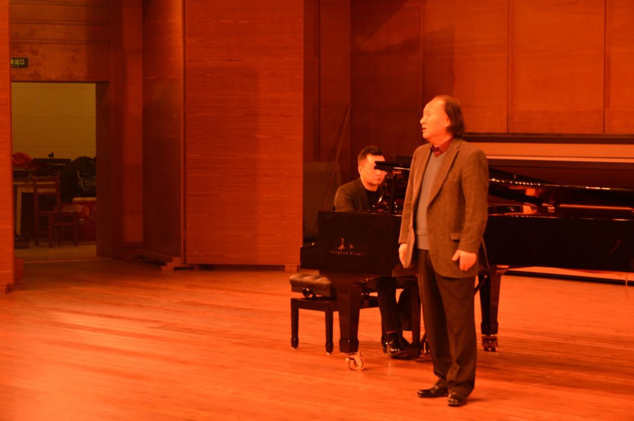 如果说上午的讲座是理论知识讲述,那么下午的音乐会就是晁浩建教授用实践的方式更深刻的传授同学们乐理的相关知识,为同学们带来了一场美轮美奂的视听盛宴。晁浩建教授、他的两位学生及梁明明老师为同学们分别演唱了《战士歌唱毛主席》《我的爱人你可听见》《怀念战友爱永在》等歌曲,演唱过程中扎实的演唱功底和富有感染的表现力深深地打动了在场的每一位听众。