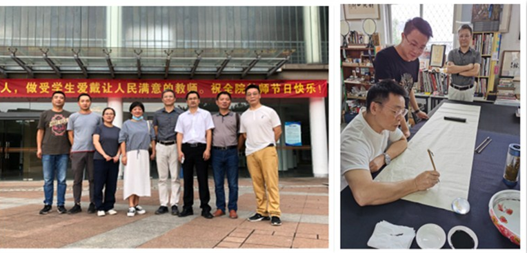 黄道培一行先后参观了我院音乐厅、美术创作工作室和美术展厅,并在国画研究生工作室进行现场笔会交流,畅聊心得体会,交流笔法技艺。参观结束后来访人员对我院人才培养和校园浓厚的艺术氛围给予了高度赞赏。