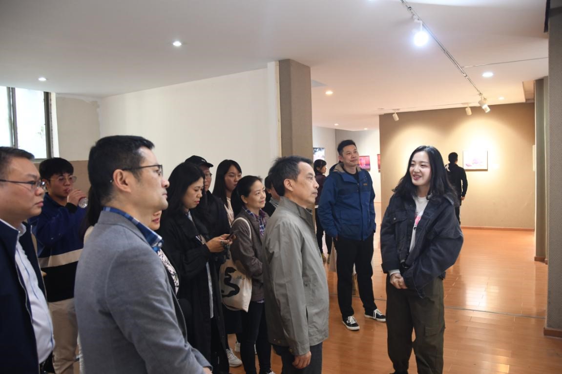 党委书记朱业宏宣布画展开幕后兴致盎然的和大家一起观看了参展作品,他对三位画家以坚定文化自信和艺术理想,不断推动中华优秀传统文化和艺术的传播给予了高度的赞扬。同时殷切希望三位学子在今后的创作上紧跟时代步伐,创作出更多更好的作品。