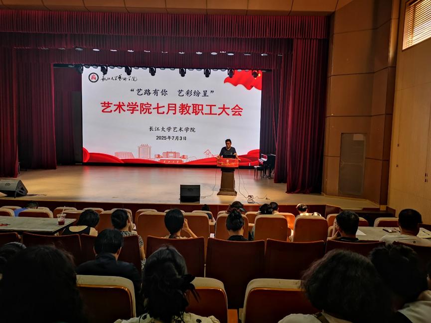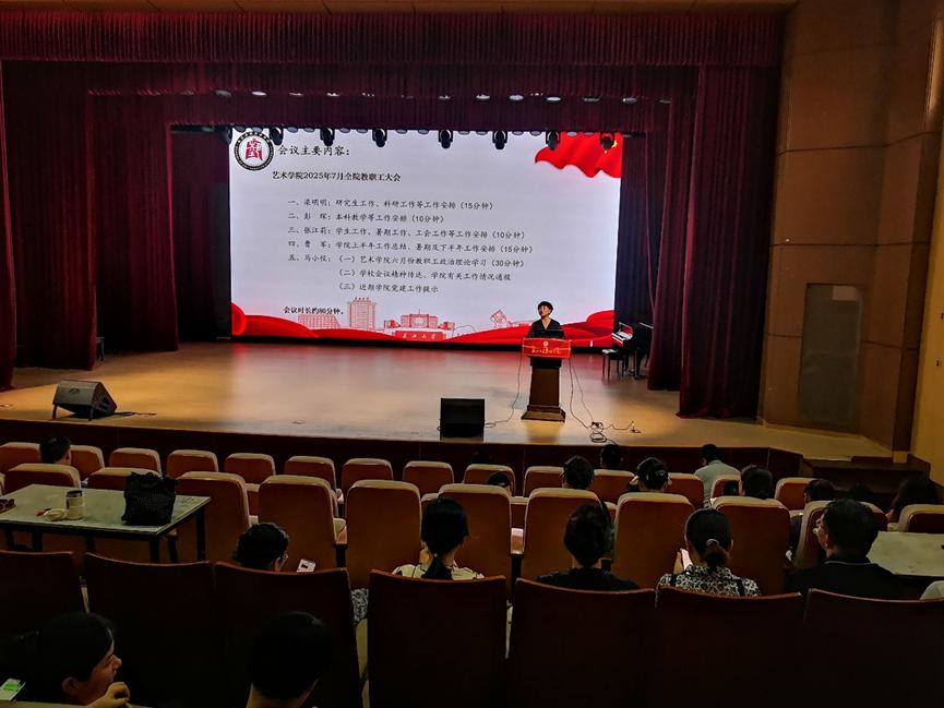 副院长梁明明通报了研究生工作与科研工作进展,重点对2025级专业硕士招生宣传、人才引进情况等工作进行说明,并对科学研究项目申报及下半年展演工作进行安排。他强调,高质量内培外引对于强化学院师资力量及学科建设发展具有重要意义,呼吁全体教师做好学院人才引进宣传工作。