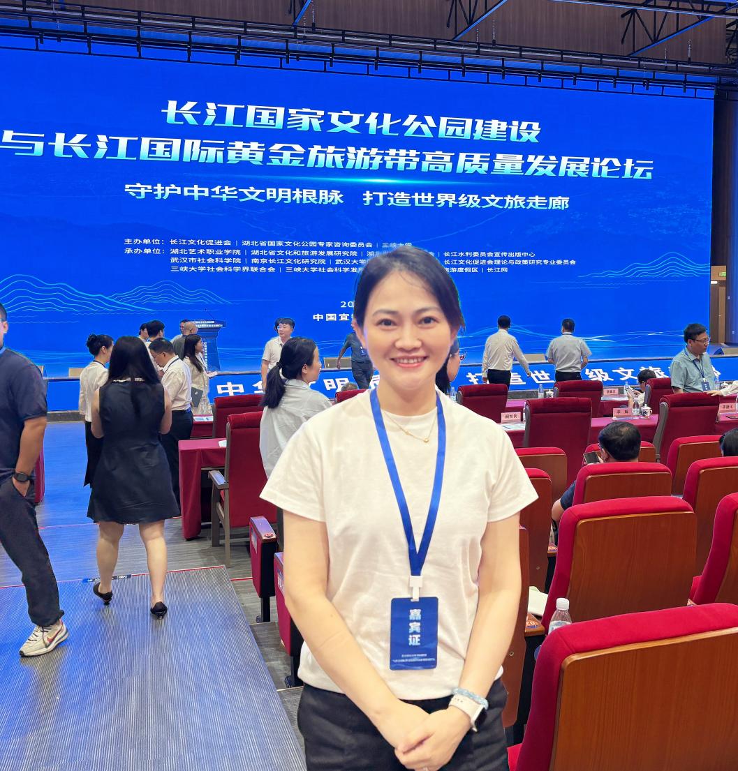 (通讯员 李炳稼 摄影 周颖萱)7月17日至18日,“长江国家文化公园建设与长江国际黄金旅游带高质量发展论坛”在湖北宜都清江湾举行。论坛由长江文化促进会、湖北省国家文化公园专家咨询委员会、三峡大学联合主办,湖北省文化和旅游发展研究院、武汉市社会科学院、南京长江文化研究院、武汉大学国家文化发展研究院等单位承办,吸引了250余位来自长江沿线高校、科研机构的专家学者及文旅部门代表参会。我院舞蹈系董柳莎副教授受邀进行交流发言。