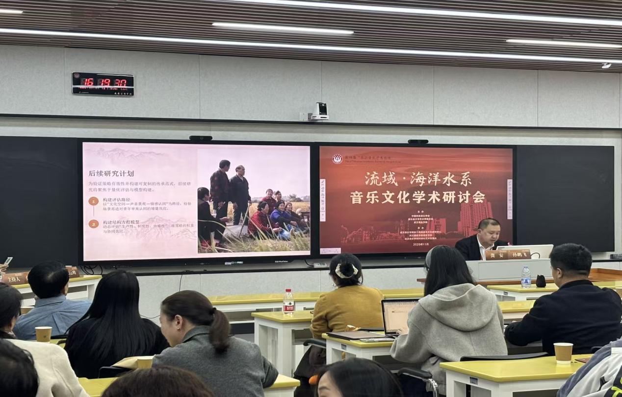 (通讯员 何逸帆)2025年11月15日至16日,由中国传统音乐学会、湖北省文学艺术界联合会与武汉音乐学院联合主办的“流域·海洋水系音乐文化学术研讨会”在武汉举行。我院孙鹏飞老师携其研究团队应邀参会并作专题发言,充分彰显了我院在传统音乐研究领域的学术积淀与师生的专业风貌。