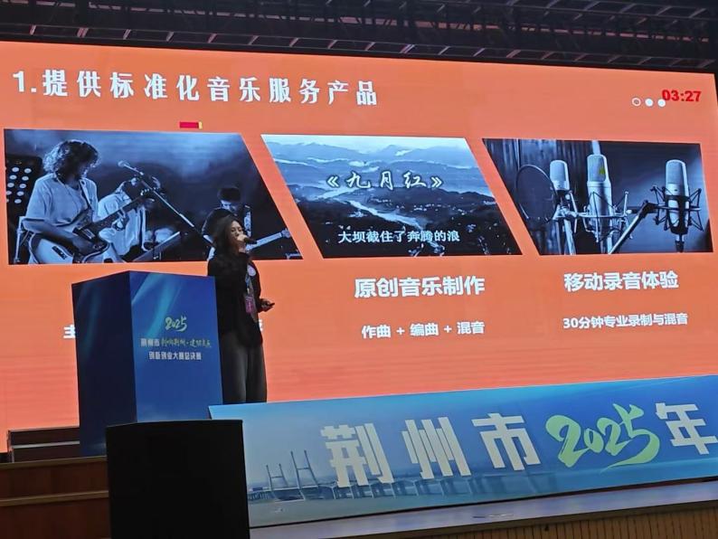 比赛期间,项目以其独特的 “音乐+空间”轻资产运营模式和创新性的社会价值,获得了现场评委的关注与好评。评委会认为,该项目不仅探索了高校音乐人才商业化路径,更通过“移动录音棚”、“沉浸式艺术沙龙”等创新形式,有效赋能文创园区等商业地标,是推动荆州城市消费年轻化、特色化的有益实践。