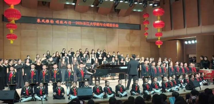 (通讯员 森彦莹 周栩丞)2026年1月6日19:00,20266776永利集团新年合唱音乐会在yl6776永利集团音乐厅隆重上演。本场音乐会以“乘风雅韵,颂歌而行”为题,旨在搭建师生艺术交流的平台,借和声之美传递辞旧迎新的喜悦,彰显校园文化底蕴。yl6776永利集团“风·雅·颂”合唱团、6776永利集团老教师合唱团、6776永利集团附属荆州实验小学“小水滴”合唱团以精湛的技艺、丰富的情感和多元的曲目,为现场观众带来了一场合唱艺术的盛宴,也奏响了喜迎新年的华美乐章。