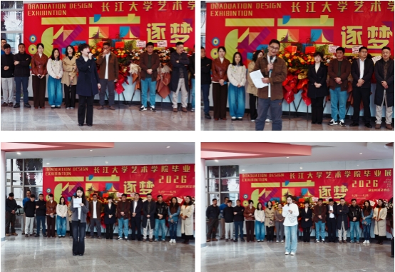 此次展览集中呈现了2023级研究生的毕业设计成果,既是学子们三年来学术深耕与艺术实践的集中汇报,也是学院教学质量与人才培养成效的生动彰显。展览涵盖国画、油画、版画、视觉传达设计、环境设计5个研究方向,共展出作品84幅。所有参展作品形式多样、风格各异,均为研究生在导师悉心指导下,融合专业所学、社会实践与个人思考精心打磨的心血之作。作品之中,既有以荆州地域文化为灵感,将古城元素与现代设计巧妙融合、传承荆楚文脉的匠心之作;也有聚焦绿色发展与民生需求,以设计为载体传递责任与温情的初心表达;更有深耕传统美术技艺,在笔墨流转、色彩碰撞、肌理营造中,探索艺术表达无限可能的大胆尝试,充分展现了当代青年艺术学子扎实的专业素养与坚定的时代担当。
