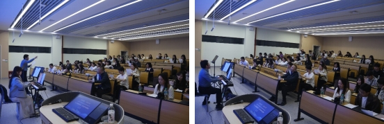 课程开始,梁明明教授首先为大家介绍了简谱乐理基本知识,用通俗易懂的方式带领同学们走进音乐的世界。随后,他纠正了许多人对音域的认知误区:“不是每个人都要追求高音,不是每个人都是男高音、女高音,还可能是中音或者低音。不能因为高音唱不上去,就轻易说自己是男中音。”这一番话引得在场同学频频点头,也让同学们学会用更科学、更包容的态度认识自己的声音。
