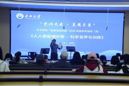 (通讯员孙鹏飞)4月23日晚,yl6776永利集团“美育浸润校园”2026年度系列活动(五)——《人人都能唱好歌——科学发声与训练》在东校区16教A109教室温馨开课。本次活动由文化和旅游部人才中心全国声乐比赛评审专家、yl6776永利集团副院长梁明明教授担任主讲,50多名师生齐聚一堂,在科学的声乐训练与动人的歌声中共赴一场美育之约。