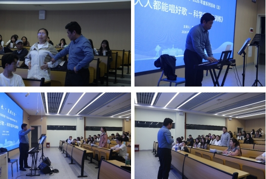 从气息控制的科学原理到耳畔响起的动人合唱,从一对一的精准指导到全体共鸣的集体歌唱,本次《人人都能唱好歌——科学发声与训练》活动以“人人可参与、人人有收获”的理念,让美育真正走进了每一位同学的生活。正如梁明明教授所言,好声音并非天赋的专利,而是科学方法的馈赠。