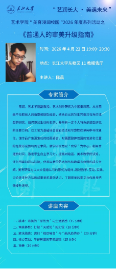 讲座将围绕“牛仔裤里的审美逻辑”“识别视觉噪音”等生活化案例,探讨审美能力的后天培养路径,帮助听众掌握实用的审美提升方法。