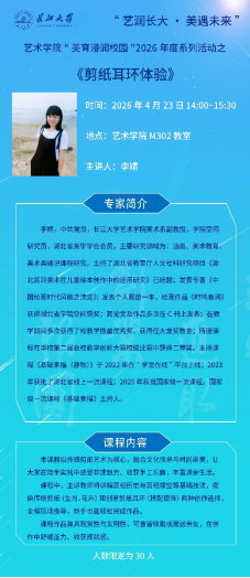 作为全年系列活动的开篇,4月份将集中推出5场面向全校师生的美育活动,内容涵盖民族管弦音乐会、审美素养讲座、声乐发声训练、非遗剪纸体验以及舞蹈形体互动,零基础亦可参与,欢迎广大师生踊跃报名。