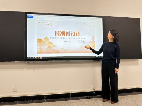 先抛出核心议题“如何让传统元素转译更具独特性”,引导学生结合自身创作或观察,从“文化深挖维度”、“载体创新维度”、“情感表达维度”展开讨论;随后各小组分享观点,随后王教授结合指导学生参赛的实践经验,分享了国潮艺术设计相关赛事的优秀作品,鼓励大家跳出同质化创作误区,在设计中坚守自我风格、追求独创性表达。