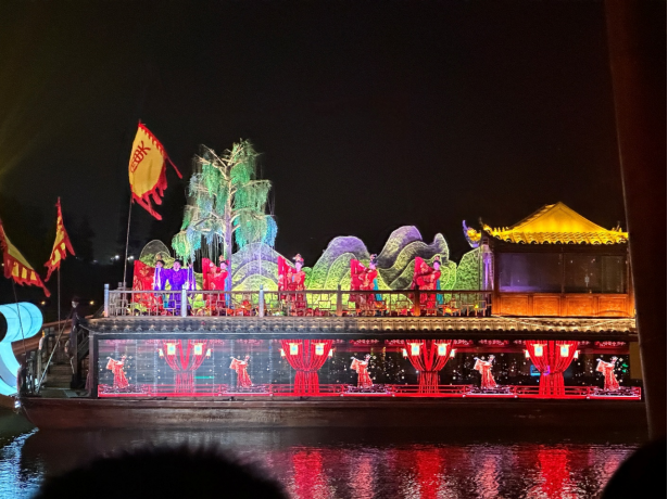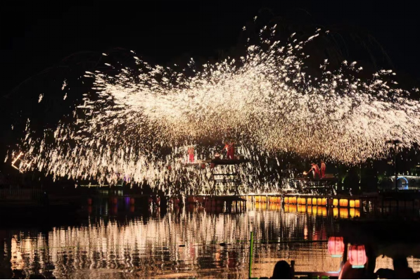 晚饭后,全体同学前往柳叶湖渔歌艺术营地,欣赏实景演出《柳叶船说》。