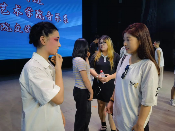 第五天,早上9点,所有同学乘车来到了湖南省湘剧院进行交流采风学习活动。为办好这次活动,湖南省湘剧院进行了精心准备和细致安排,剧院优秀青年演员们为音乐系师生上演了一系列精彩的节目。活动由湖南省湘剧院国家一级演员李希恩主持,副院长杨军在活动中致辞,院党委副书记周亚男、副院长唐志辉参加活动。