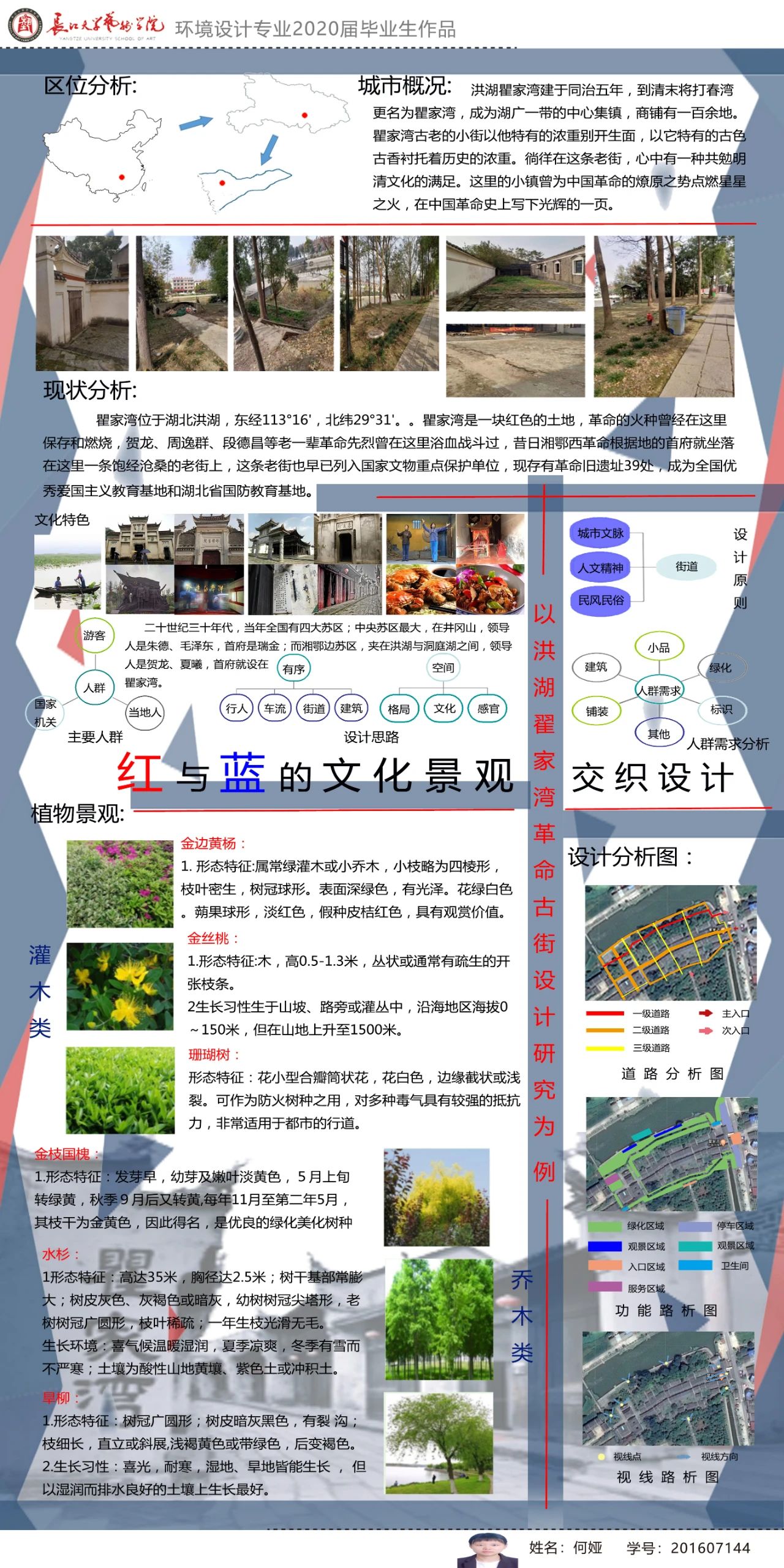 设计题目:红与蓝的文化景观交织设计——以洪湖瞿家湾革命古街设计研究为例