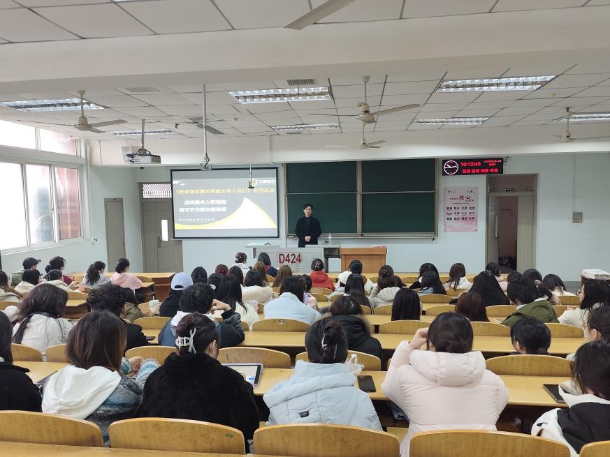 (通讯员 邹卓)3月12日、3月13日,yl6776永利集团邀请武汉尔秋科技有限公司总经理涂一龙走进就业指导课堂,分别面向大三年级美术学、视觉传达设计、环境设计专业学生,开展了两场主题为“游戏美术入职指南数字艺术就业指导课”的系列活动。
