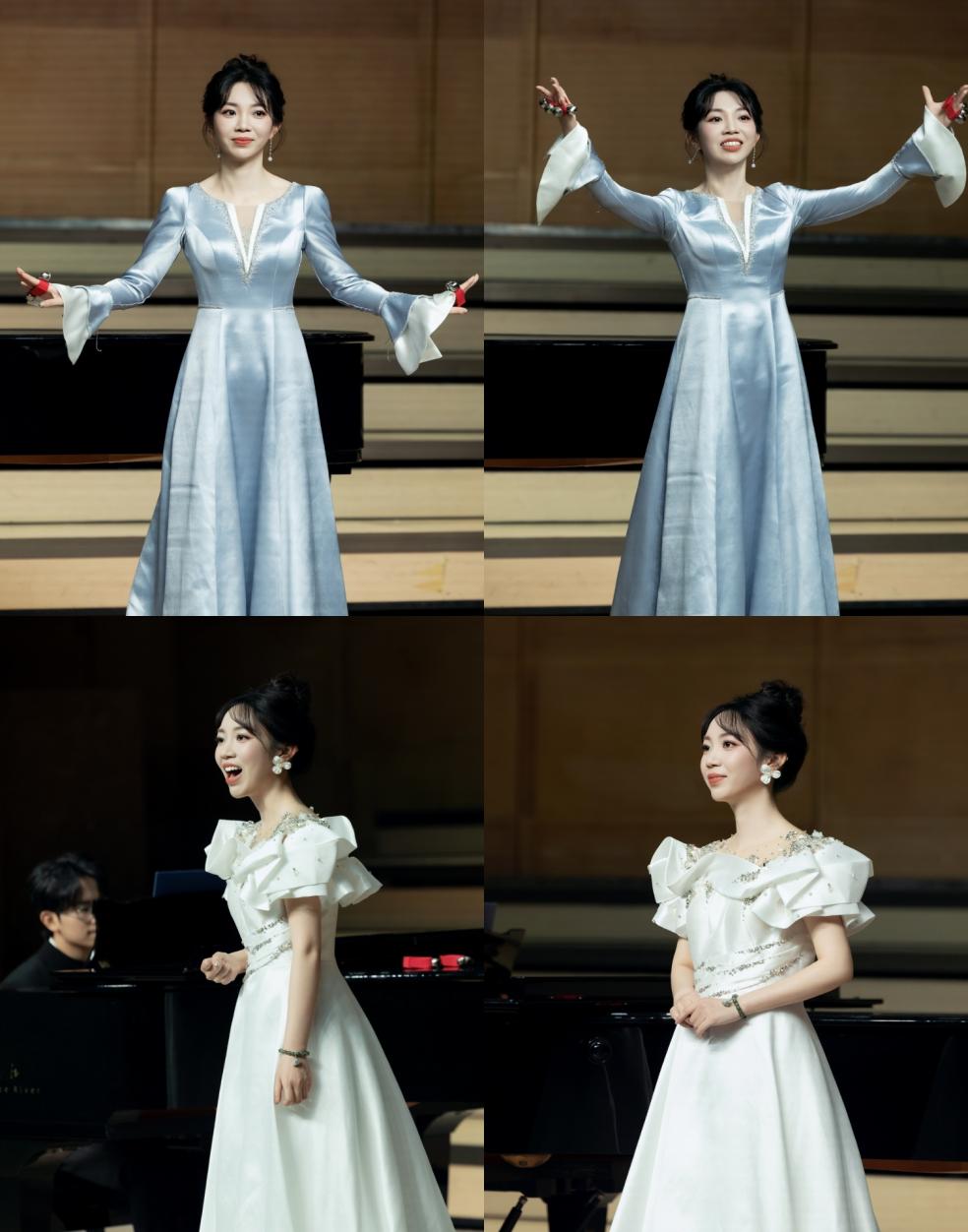 音乐会在曲目编排上体现了清晰的学术脉络与艺术追求。演唱者以地域风格鲜明的传统民歌(如贵州改编民歌《苗岭飞歌》、湖北民歌《跑旱船》、山东民歌《包楞调》)为根基,展现了其对方言韵味与原生风格的精准把握。继而,在经典创作歌曲与歌剧选段(如《八月桂花遍地开》选段《哥哥不来花不开》、《洪湖赤卫队》选段《没有眼泪,没有悲伤》)中,展示了运用科学发声技术诠释复杂作品、塑造鲜明人物形象的能力。此外,音乐会还精心安排了具有时代气息的优秀新作(如《蒹葭》、《茉莉与格桑》、《同簪》),体现了歌者对接当代审美、拓展演唱曲库的积极尝试。