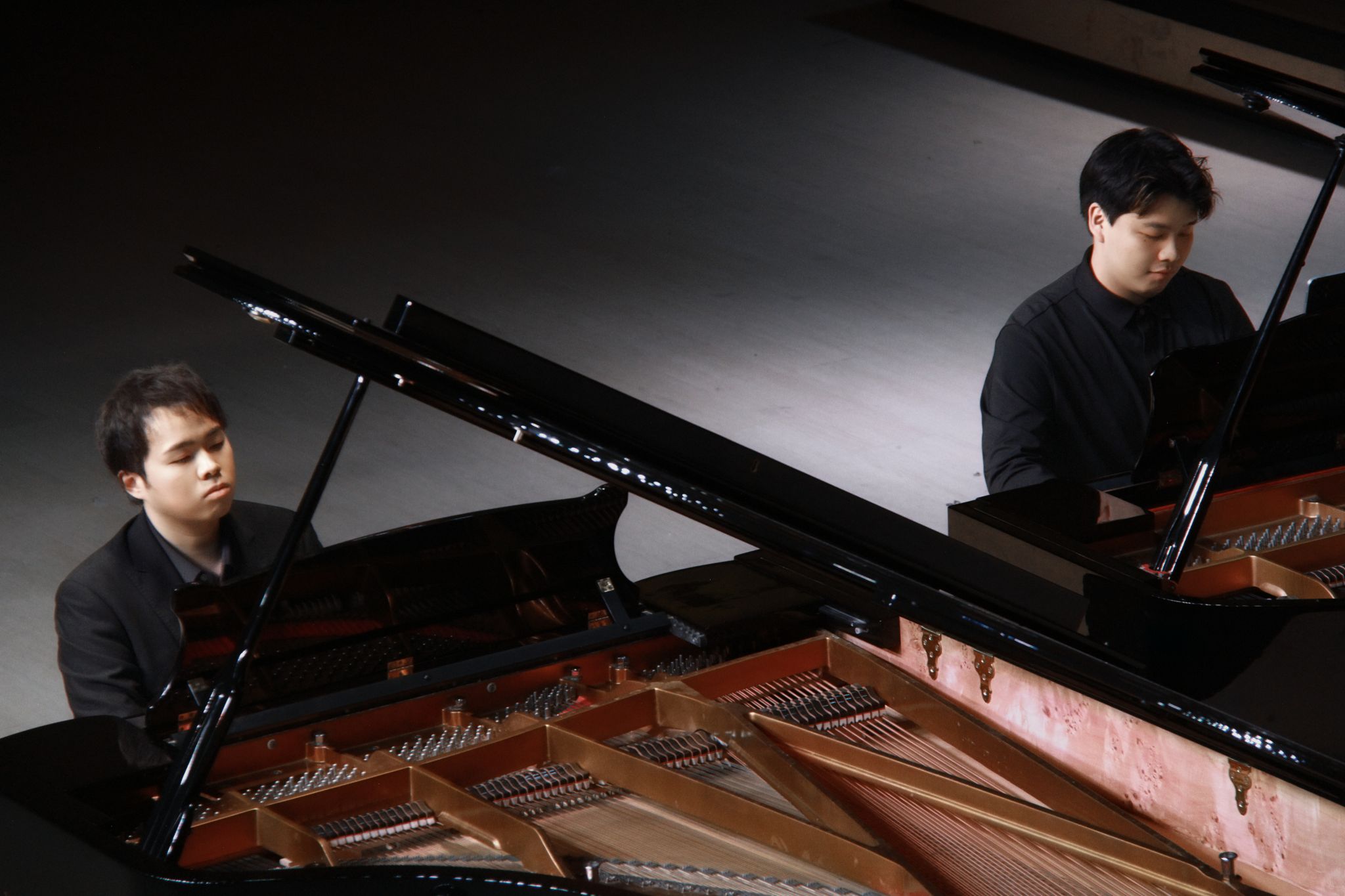 音乐会的尾声部分颇具特色,首先演奏了由朴永春改编的朝鲜民歌《阿里郎》,旋律优美而深情,在钢琴上呈现出东方音乐的韵味与真挚情感。最后,赵浩志与第二钢琴张盼联袂献上了普朗克《d小调双钢琴协奏曲》FP 61第三乐章。两架钢琴默契对话,音响交织融合,既有新古典主义的简洁明快,又不乏法国式的诙谐与柔情,将音乐会推向高潮。